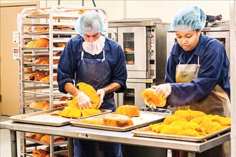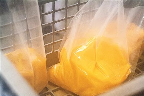 More than 1,300 pounds of squash recently donated by Karl Sutton of Fresh Roots Farm was roasted, pureed and frozen at the Mission Mountain Food Enterprise Center. The final product has been donated to Montana food pantries.
