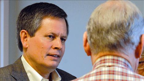 POLSON — Fresh from a 2,000-mile sweep around eastern Montana, Steve Daines stopped for a visit with Lake County constituents at the Lake County Republican Women’s luncheon on May 16. Daines, Montana’s U.S. Representative, is running for the U.S. Senate seat vacated by long-time Senator Max Baucus.